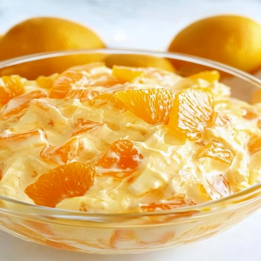 - Gently fold in the drained mandarin oranges and pineapple chunks.