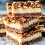 Pecan Pie Cheesecake Bars are a delightful dessert that marries the creamy richness of cheesecake with the crunchy sweetness of pecan pie. These bars feature a buttery graham cracker crust, a smooth cheesecake filling, and a glossy topping of caramelized pecans. They are not only visually appealing but also incredibly satisfying to the taste buds, making them an excellent choice for any gathering—from festive holidays to casual weeknight dinners. With their effortless preparation and impressive presentation, these bars are sure to become a favorite among family and friends.