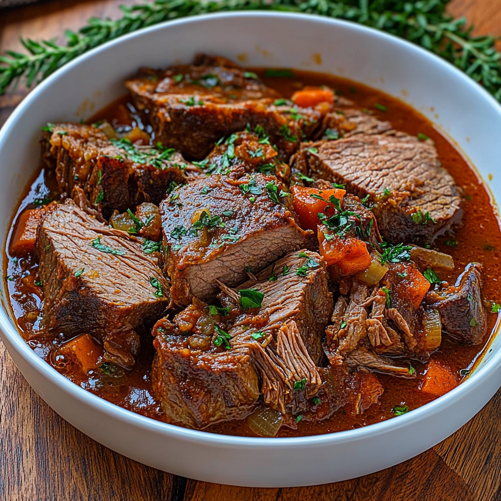 Italian Pot Roast, or Stracotto, is a comforting and flavorful dish that brings the warmth of Italian cuisine to your dinner table. This slow-cooked beef roast is typically braised in a rich tomato-based sauce with aromatic herbs and vegetables, resulting in tender meat that practically melts in your mouth. The beauty of this recipe lies not only in its taste but also in its simplicity; it requires minimal active cooking time, allowing you to focus on enjoying time with family or preparing other sides. hearty beef and pork ragu Perfect for gatherings or cozy weeknight dinners, this dish serves as a hearty main course that pairs wonderfully with crusty bread or creamy polenta. With just a few steps and basic ingredients, you’ll create an impressive meal that has everyone asking for seconds. If you’re looking to take your culinary skills up a notch while enjoying a classic Italian favorite, dive into this guide on how to prepare Stracotto for an unforgettable dining experience.
